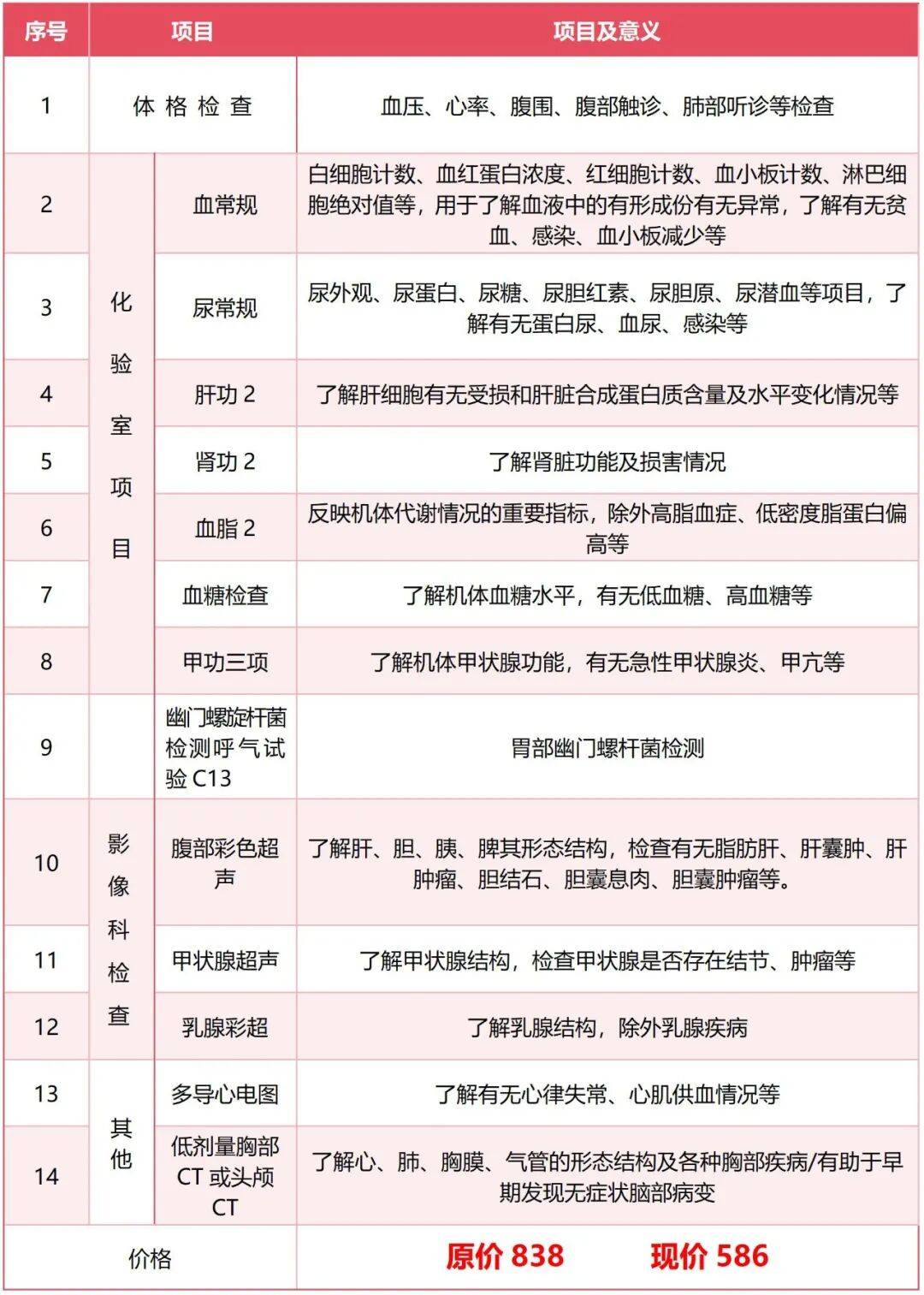 本套餐涵盖核心体检项目,旨在系统性排查常见健康隐患,是您定期健康监测的明智之选。